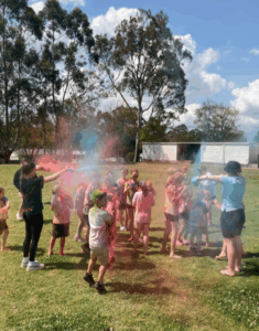 Kicking off the holidays with a day filled with colour and creative challenges, St Nicholas OOSH Abermain brought back the classic colour run – an OOSHie favourite. Paired in week 2 of the holidays with Kidchella, our Abermain OOSHies continued their creative exploration, making friendship bracelets, glitter art and slime before boogying it out on the disco floor.